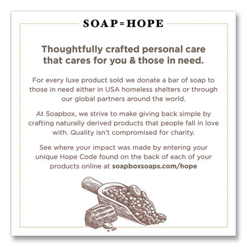 SOAP = HOPE. Change the world -- choose a soap that matters. With each purchase, a bar of soap is provided to someone in need either locally or abroad. Made with thoughtfully selected, naturally derived ingredients and offer unique, soothing aromas to calm your body and mind. Removing daily grime from your hands is a must for hand soap, but that shouldn't mean stripping away moisture. Infused with hydrating shea butter and aloe vera that will leave your hard-working hands feeling clean and nourished with every wash. Vegan soap is cruelty-free, gluten-free and free of harsh chemicals and parabens. Soap Type: Viscous Liquid; Application: Hand; Capacity (Volume): 12 oz; Scent: Sea Minerals and Blue Iris.