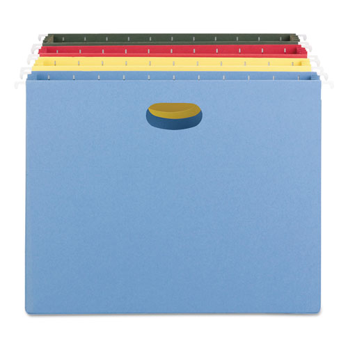 Expandable, box-bottom hanging pockets feature full-height side gussets that keep the pocket from catching on drawer rails. Die-cut handle for easy removal from file drawers. Ideal for storing large amounts of paperwork. Folder Size Type: Letter; Max Folder Expansion: 3.5"; Folder Color: Assorted; Color Family: Multicolor.