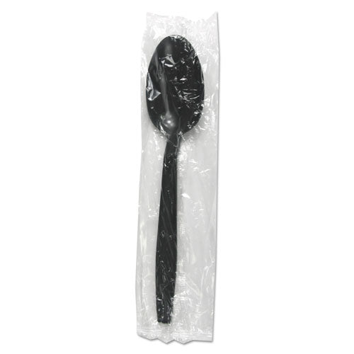 Heavyweight Wrapped Polypropylene Cutlery, Teaspoon, Black, 1,000-carton