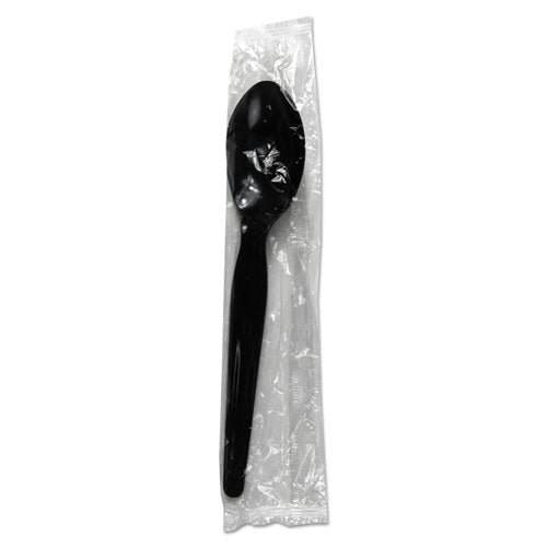 Heavyweight Wrapped Polystyrene Cutlery, Teaspoon, Black, 1,000-carton