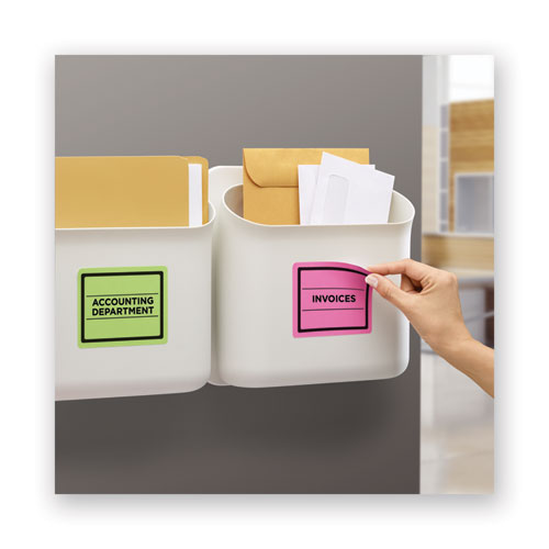 Have something important to say? Customize your white labels with attention-getting images or make your most important messages stand out with high-visibility color labels. Ideal for announcements, priority messages, addressing, color-coding, identification/warning labels and more! Easy to customize with free templates from Avery® Design & Print. For laser printers. Now you've got their attention. Laser/Inkjet Removable Neon Rectangular Labels with Sure Feed™—Ensuring a reliable printer feed. Shape: Rectangular; Label Size - text: 3.33 x 4; Label Color(s): Assorted; Color Family: Multicolor.
