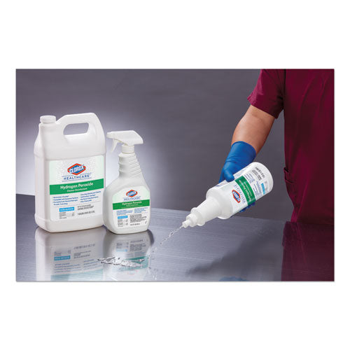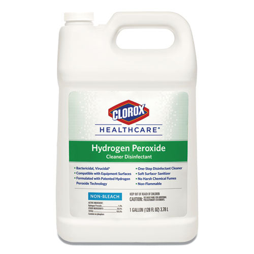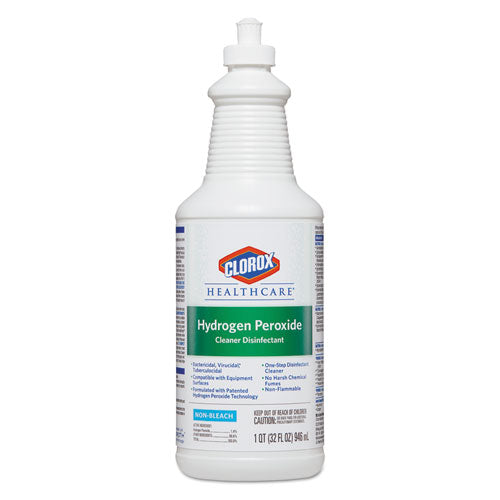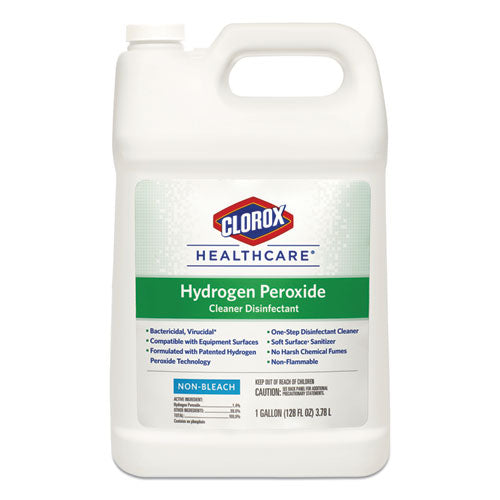 Clorox Healthcare® Hydrogen Peroxide Cleaner Disinfectant kills microorganisms quickly on a broad range of surfaces. It is a ready-to-use one-step noncorrosive disinfectant cleaner that cleans and disinfects faster than the competition. It has 30 to 60 second hard surface disinfecting times on most bacteria and viruses. On soft surfaces like, curtains, chairs and couches, it kills bacteria in just 30 seconds. It is safe to use on several types of fabrics such as polyester and cotton and it will not harm canvas, nylon or polypropylene. It is EPA-registered to kill pathogens on both hard and soft surfaces. Conscious of patient and staff comfort, this cleaner it is formulated with no harsh chemical odors, fumes, or added fragrances. Intended for use in commercial settings.