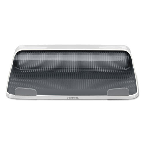 An innovative design that elevates your laptop for enhanced viewing comfort while working at your desk. The built-in curved design helps keep your laptop cool, while front bumpers hold laptop securely in place. 25° incline provides a comfortable viewing angle. Supports laptops up to 17”. 100% recyclable. Look for coordinating I-Spire Series™ products from Fellowes®. OEM/Compatible: Compatible; Workstation Type: Mobile Workstation; Traditional Desk/Table; Series Name: Fellowes® I-Spire Series™; Width: 13.19".