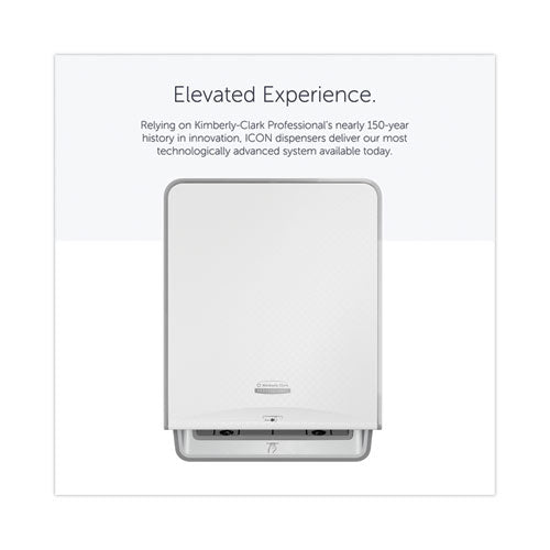 The Kimberly-Clark Professional ICON™ automatic paper towel dispensing system features first-of-a-kind versatility and effortlessly enhances the look of the restroom with one of an exclusive line of six designer faceplates. Inspired by human-centered design, the ICON™ dispenser features intuitive control panel, front-load battery bay and dampened hinge technology. Using direct-drive technology the ICON™ dispenser has a patented dual sensor technology that delivers worry-free, touchless 99.99% jam-free dispensing and is compatible with your choice of Kleenex or Scott roll towels.