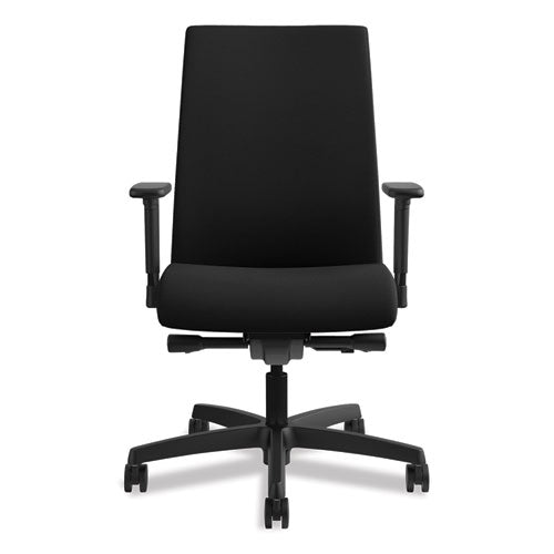 Provides added support for all-day seating comfort. Synchro-tilt with variable locking positions and independent back angle adjustment. Polyester upholstery with Nano-Tex® for superior stain resistance. Adjustable T-arms offer custom comfort. Five-star base with casters for easy mobility. Recommended Applications: General Office & Task; Seat Color: Black; Back Color: Black; Color Family: Black.