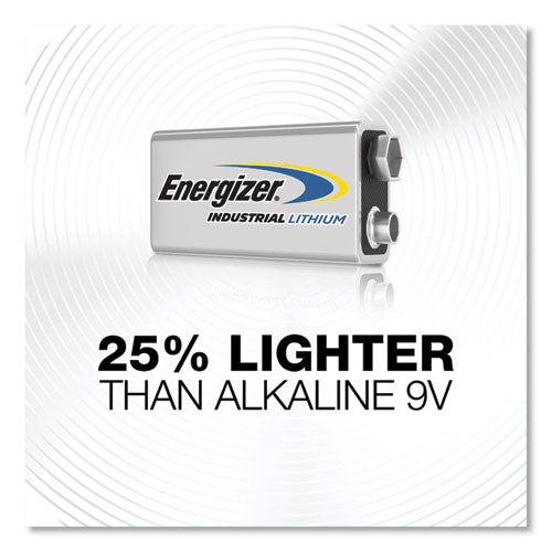 Power your industrial and professional devices with Energizer® Industrial® Lithium 9V Batteries. Proven lithium performance keeps you on the job with the longest-lasting professional batteries in high tech devices at construction sites, facility maintenance, repair services, medical centers, business offices, classrooms and more. Because your tools of the trade are an investment worth protecting, these industrial 9V batteries are 100% leakproof in standard use. They perform in extreme temperatures (-40°F to 140°F) and hold their power with up to 10 years of shelf life. All of these features are packed inside a lithium 9V battery that weighs 25% less than an alkaline 9V. Oh, and there's this—these 9V batteries provide up to 10 years of backup battery in AC-powered smoke detectors. So, for the precision devices and crucial equipment of your worksite, depend on the power and protection of Energizer® Industrial® Lithium 9V Batteries.
