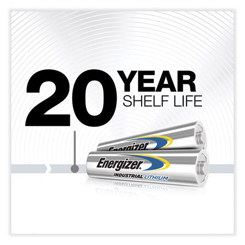 Power your industrial and professional devices with Energizer Industrial AAA Lithium Batteries. Construction site, facility maintenance, medical center, business office, classroom--wherever you work, lithium power keeps you on the job with the longest-lasting professional batteries in high tech devices. Plus, these AAA batteries are 100% leak proof in standard use, giving your work site electronics a long and productive life. Get exceptional performance even in extreme temperatures (-40°F to 140°F) and the reassurance that these lithium batteries are 100% leakproof in normal use. And because they hold their power with up to 20 years of shelf life, you won't have device downtime. Know what else? You get all that in a lithium heavy duty AAA battery that weighs 33% less than an alkaline AAA. So, when work depends on door locks, hand sanitizers, pen flashlights, and more, you can count on the power and protection of Energizer Industrial AAA Lithium Batteries.