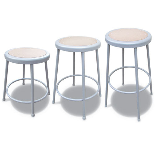 Industrial Metal Shop Stool, 24" Seat Height, Supports Up To 300 Lbs, Brown Seat-gray Back, Gray Base