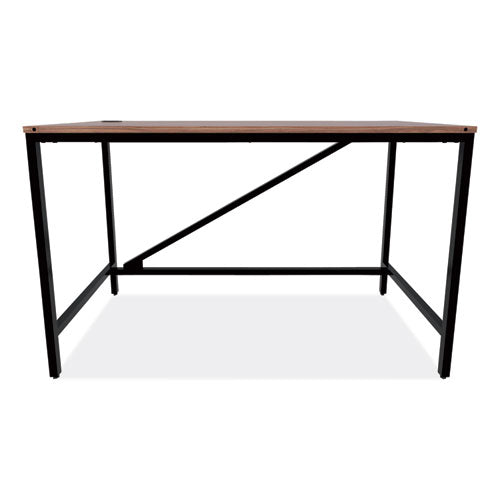 Table desk/writing desk perfect for the home or small office. Durable laminate top with squared steel powder coated legs. Cross-stability bar to prevent rocking and to ensure a stable feel. Leveling glides included to adjust for uneven floors. Series Name: Alera Industrial Series; Worksurface/Base Color: Modern Walnut; Color Family: Walnut; Worksurface Shape: Rectangular.