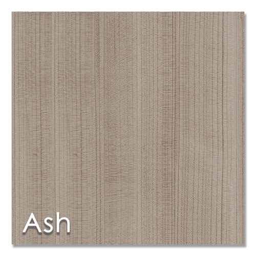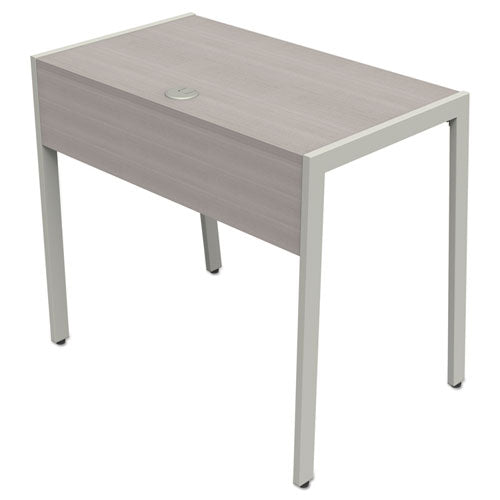 Open modern desk is perfect in small spaces. Quick, easy assembly with no tools required. Scratch- and stain-resistant woodgrain laminate top with grommet for wire management. Strong silver powder coated steel frame with modesty panel. Leveling glides adjust to accommodate uneven floors. Series Name: Klin Desk; Worksurface/Base Color: Ash; Color Family: Gray; Worksurface Shape: Rectangular.