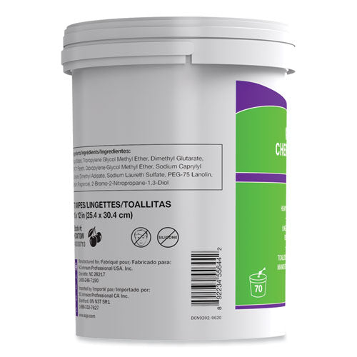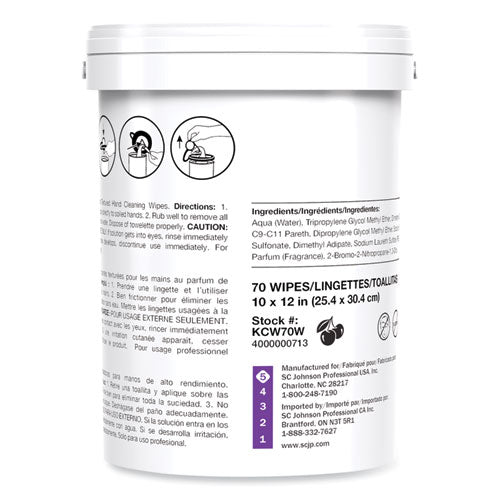 Tough, dual-sided extra-large wipes with cherry fragrance for use without water. Powerful, solvent-based cleaning ingredients remove a broad spectrum of contaminants.