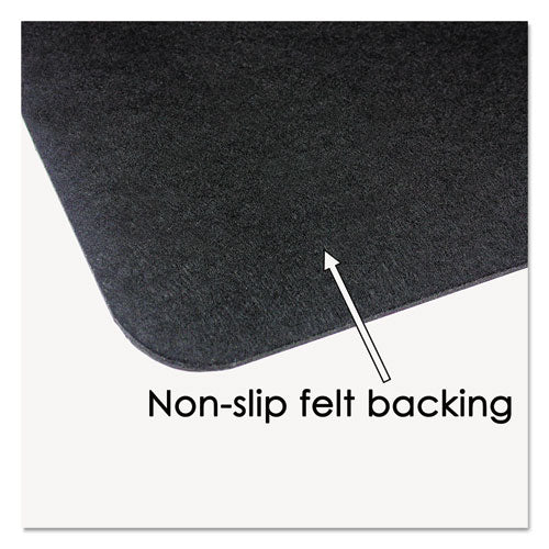Attractive, soft leather desk pad. Ergonomic, non-glare surface enables smoother writing for improved penmanship. Protects your desktop from scratches, stains and spills. Ideal for boardrooms, hotel rooms and reception areas. Includes 3" x 3" matching coaster. Width: 24"; Depth: 19"; Base Color: Black; Finish: Nonglare.