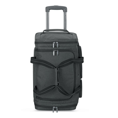 Leroy Rolling Duffel with fully padded 15.6" laptop compartment. Two front zippered pockets. Separate shoe/laundry compartment. Push-button telescoping handle system. Carry handles. Easy glide wheels. For Use With: Laptops; Color(s): Gray; Color Family: Gray; Material(s): Polyester.