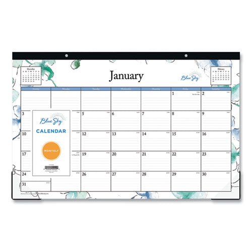 Use this desk calendar as a writing surface to jot down notes, ideas, appointments, reminders and more. Dated planning pages range 12 months from January to December. One page per month format includes ruled daily blocks, Sunday through Saturday scheduling, count of days/days remaining, holidays and past and future months reference. Fresh page designs add a touch of style and offer plenty of room for all of your important information. Slim desk pad calendar is printed with soy based ink on thick, premium quality, acid free pages that reduce ink bleed through and are made with post consumer material Size: 17 x 11; Page Color/Theme: Lindley; Appointment Ruling: Unruled Blocks; Edition Year: 2021.