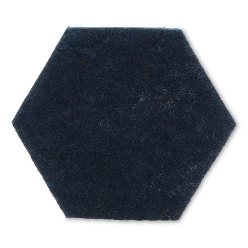 With this long-lasting scouring pad, there's no need to worry about residual food particles, it rinses clean each and every time. The dark blue side retains its full scouring power through repeated uses because it's engineered to prevent large food particles from getting trapped on the pad. Use it on stainless steel pots and pans, cooking appliances, utensils, equipment, and any other surface where minimal scratching is desired. This scouring pad minimizes operator fatigue while making quick work of cleaning up your toughest messes. Scouring Pads/Sticks Type: Pad; Material(s): Fiber; Size (W x L): 5.75" x 5"; Color(s): Blue.