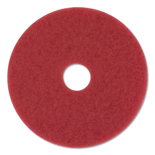 3M™ Red Buffer Pads 5100 can be used for everyday cleaning, remove light soil, scuff marks and black heel marks. Its regular use reduces the frequency of scrub-and-recoat operations, enhancing the appearance of your finished floors with reduced labor and materials costs. Fibers throughout the pad are uniformly coated with a high-quality resin and fine cleaning particles, providing good performance throughout the pad's long life. Open-web construction means this washable, reusable pad resists clogging and loading. Conformable fibers provide maximum pad-to-floor contact. Pads are reversible. For rotary swing machines and automatic floor machines running at low speed (175-600 rpm). Application: Buffing; Height: 14"; Width: 28"; Color(s): Red.