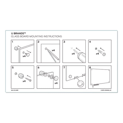 White frosted magnetic glass dry erase board is a perfect and functional solution for the frequent and heavy usage areas of your office, school classroom, home or any commercial space. Clean, contemporary and frameless product design lines will add a touch of subtle style to your wall. The modern frameless feature enables you to hang multiple glass boards adjacent to each other and expand the writing surface to fit your custom space needs. The board's premium magnetic ultimate glass writing surface will never stain or ghost. All ink erases easily with a simple eraser and the glass surface continuously outperforms all traditional melamine or painted steel dry erase writing surfaces. Occasionally, use any dry erase board spray or wet dry erase board wipes after continuous use to clean the writing surface. The glass magnetic surface works with high energy rare earth magnets. Although all dry erase and glass markers work well with this board, the U Brands dry erase markers provide the ultimate writing and eras-ability experience. For safety, the board is made from tempered glass as well. This whiteboard board has a universal mounting system, as it can be hung vertically or horizontally to fit your allocated space. All wall hanging hardware is hidden under the mounting bolts for a sleek and modern appearance. Mounting hardware and instructions are included for quick and easy mounting. The board is packaged with extra supportive corrugate material that is highly resistant to damage during shipping; all corrugated material can be recycled once unpacked. Board Type: Magnetic Dry-Erase; Board Width: 72"; Board Height: 48"; Board Depth: 1".