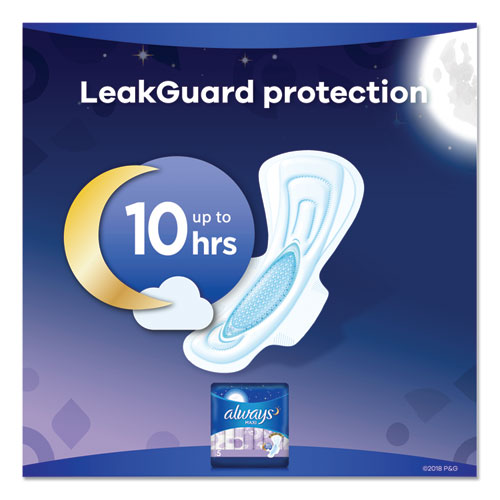 Pick a pad that provides long-lasting protection day and night - providing absorbency for up to 8 hours, for your longest days. Maxi pads absorb in seconds, keeping you dry and comfortable. Features LeakGuard™ Core Plus RapidDry to pull fluid deep into the core and away from the edges for amazing overnight protection. Deep all-around barriers eliminate leaks. Flexi-Wings flex as you move, helping pads to stay put and providing extra protection against leaks. Size 5, 20 Pack. Absorbency: Extra Heavy Overnight.