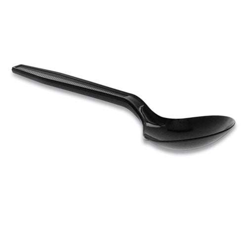 Meadoware Polystyrene Cutlery, Soup Spoon, Medium Heavy Weight, Black, 1,000-carton