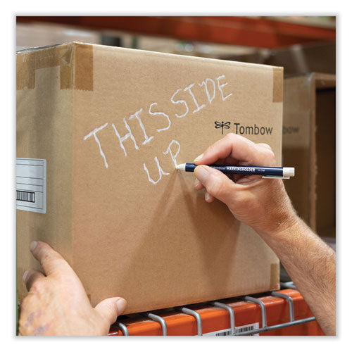 Versatile wax-based marking pencil refills ensure smooth, legible writing on a variety of surfaces. Use on both porous and non-porous surfaces, such as ceramics, stone, wood, glass, rubber, plastic, textiles, metal, coated paper, cardboard and more. Wax-based medium is water-resistant and works great on both dark and transparent surfaces. Easily erase from non-porous surfaces by wiping with a damp cloth. No sharpening required—perfect for craftsmen and professional use in industrial environments. Compatible with Tombow® Mechanical Wax-Based Marking Pencils.