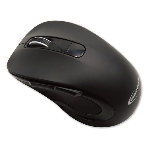 The Innovera® Mid-Sized wireless optical mouse is comfortable for use with either hand and accurately tracks on virtually any surface. The ergonomic design and rubber surfaces ensure all day comfort and productivity. The 2.4 GHz plug-n-play wireless dongle conveniently stores in the base of the mouse. Includes two AAA batteries. Connector/Port/Interface: Dongle; Left/Right Hand Use: Right; Mouse Technology: Optical; Wired/Wireless: Wireless.
