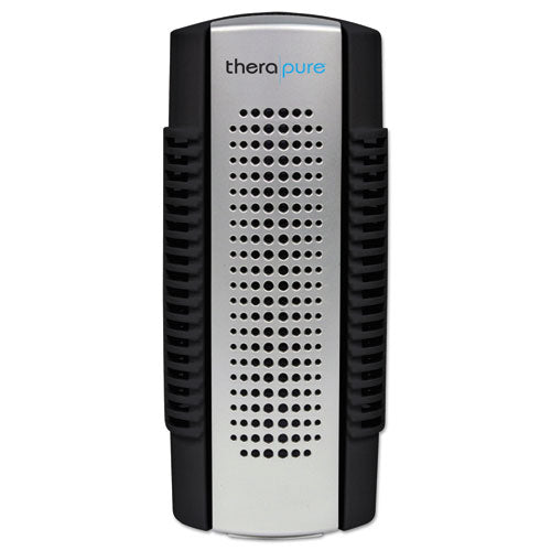 Therapure™ Mini delivers cleaner, fresher, healthier air to smaller indoor environments, such as bathrooms, closets, pantries and other small areas in homes or offices. Effectively captures harmful particles and allergens on easy-to-clean stainless steel collection blades. You can plug the Mini anywhere in your house! Black/Silver. Air Cleaner Machine Type: Collection Blade; Filter Types: Stainless Steel Collection Blades; Color(s): Black/Silver; Speeds: 1.