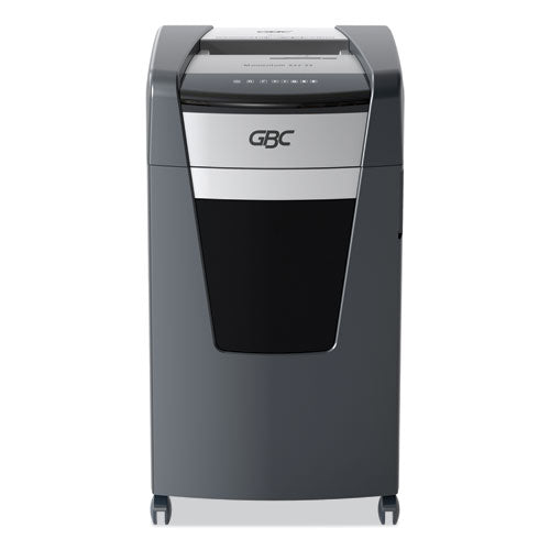Keep sensitive and confidential information safe and secure with the GBC Momentum Paper Shredder. This shredder uses a micro-cut style shred, which provides P-4 Level Security. It's a great choice for shredding in the modern office. Active Sensing Anti-Jam Technology helps prevent and fix jams, which keeps your machine running smoothly. The high-performing motor has an impressive continuous run time so you can get more done without stopping. Special features include a bin full indicator, auto shut-off and eco mode. This machine easily shreds CDs, credit cards, paper clips, staples and junk mail.
