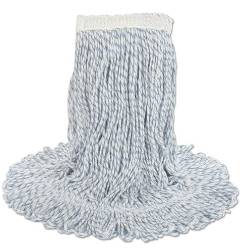 HyGrade four-ply rayon-blend helps you lay finish more evenly. Looped ends minimize unraveling and linting. Durable, double-sewn tailband and polyester-tape headband. Mildew- and bacteria-resistant. Designed for use with clamp- and grip-style mop handles (sold separately). Head Type: Wet Mop; Application: Floors; Mop Head Style: Looped End; Mop Head Size: Medium.