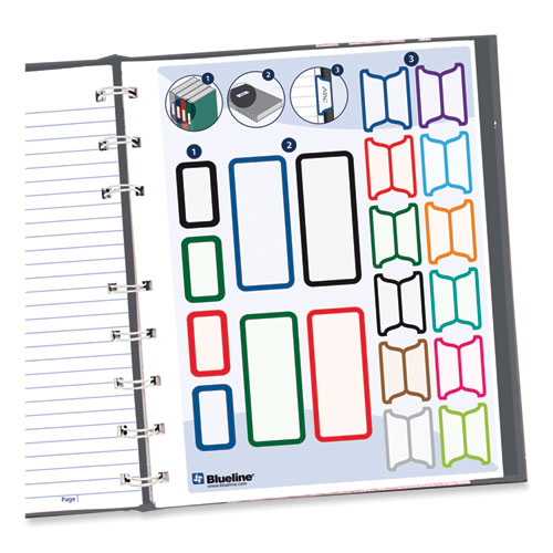 Durable hard cover provides increased writing stability. Twin-wire binding allows book to lie flat when open. Includes colored, self-sticking tabs/labels to customize index, cover and spine. Microperforated pages. Space for date. Double-sided pocket. Archivable.