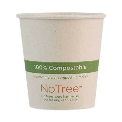 Made from rapidly renewable, unbleached sugarcane paper. No trees are used to make NoTree™ cups. Bio-lining made from plants creates a moisture barrier. Disposable, freezer safe, and contain no wax or plastic lining. Suitable for liquids up to 220°F. Great for warm beverages like coffee, tea, and hot cocoa. 100% compostable in two to four months in a commercial composting facility. Not microwavable. Cup Type: Hot; Capacity (Volume): 4 oz; Material(s): Unbleached Sugarcane Paper; Color(s): Natural.