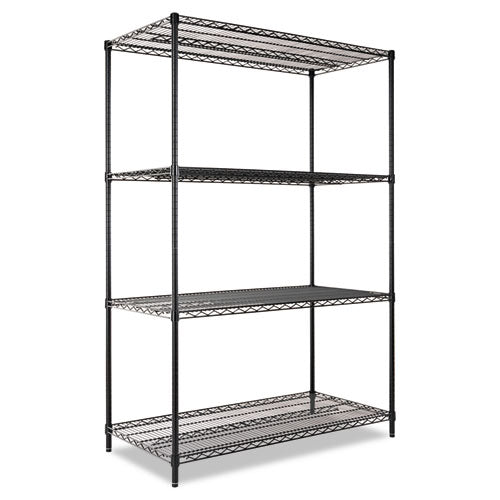 Ideal storage solution for industrial and commercial use. Snap-together design assembles in minutes. Strong welded wire construction. Can be set up as a four-tier single rack or as two two-tier racks to meet specific needs. Open design allows air circulation and reduces dust build-up. Up to 1,250 lbs. per shelf (evenly distributed). Color: Silver; Overall Width: 36"; Overall Depth: 18"; Overall Height: 72".