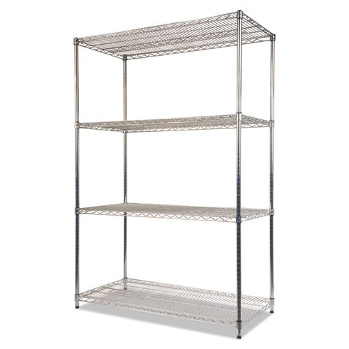 Nsf Certified Industrial 4-shelf Wire Shelving Kit, 48w X 24d X 72h, Silver