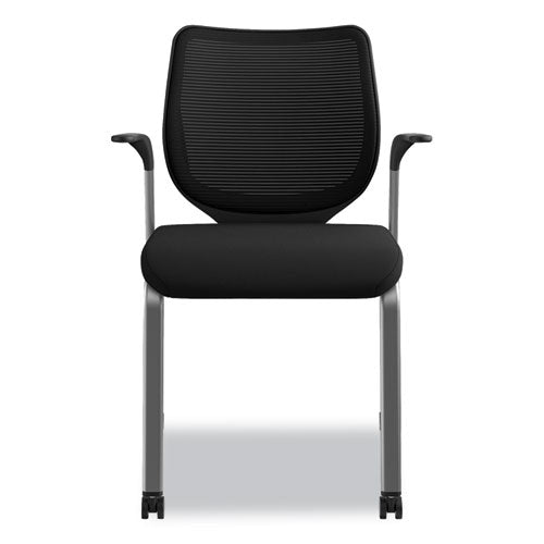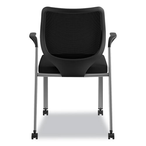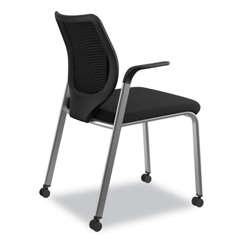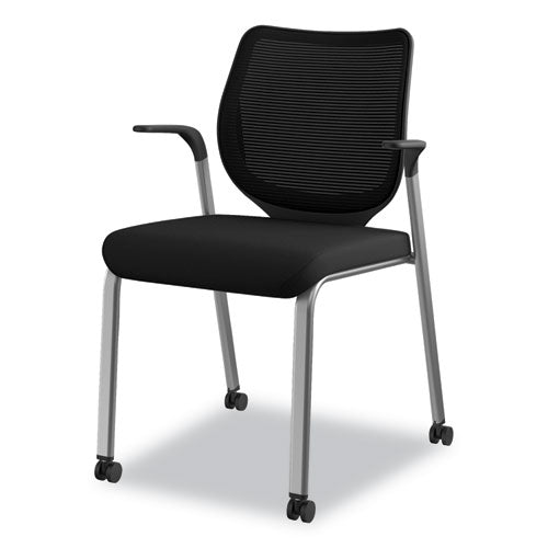 Slender, contemporary look coordinates well with most open plan systems. Unique materials and innovative construction deliver surprising comfort without bulky padding. Multi-directional stretch mesh back puts lumbar support right where you need it. Internal structure of seat uses unique stretch material that eliminates pressure points. Easily mobile on four swivel casters. Stack up to four high for space-saving storage. Recommended Applications: Conference, Training & Meeting; Guest, Reception, Waiting Room & Lounge; Seat Color: Black; Back Color: Black; Color Family: Black.
