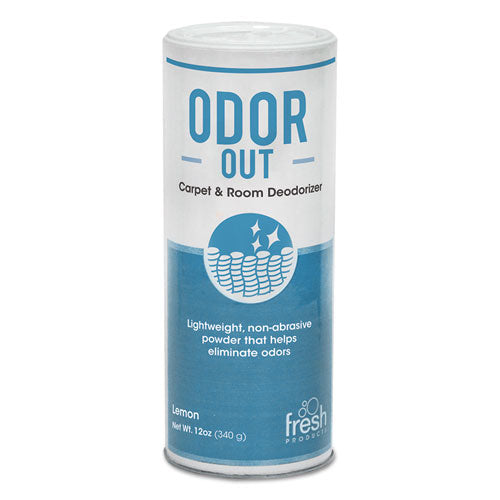 Odor-Out is a carpet and room deodorizer and absorbent. Simply sprinkle over a carpet and vacuum it up; it won’t damage vacuum parts or carpet fibers. Safe, light, non-abrasive, biodegradable cellulose (natural) based formula stays on top of carpet. It easily vacuums up because of the larger particle size unlike competing deodorizing carpet powders. Non-abrasive formulation doesn’t damage vacuum parts or carpet fibers, keeping them like new. Scent: Bouquet; Physical Form: Powder; Application: Odor Control; Capacity (Weight): 12 oz.