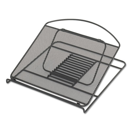 Adjustable stand positions laptop at personalized viewing levels, reducing glare and eye fatigue. Unique design allows unit to fold flat for portability. Durable steel mesh construction provides strength and stability while blending into any workspace décor. OEM/Compatible: Compatible; Workstation Type: Mobile Workstation; Traditional Desk/Table; Series Name: Safco® Onyx™; Width: 12.25".