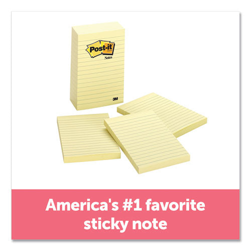 Post-it® Notes Original Pads are perfect for leaving notes of encouragement. Trust Canary Yellow, the most familiar color, with your important messages. Self-stick, removable adhesive sticks securely, removes cleanly. Pad Type: Standard; Sheet Size (W x H): 4 x 6; Number of Sheets per Pad: 100; Ruling: Lined.