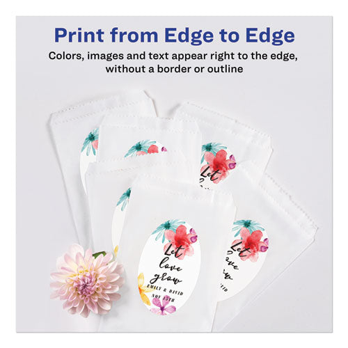Make your product or promotion stand out in a crowd! These customizable oval labels offer just the marketing pop you need. Sure Feed™ technology ensure reliable feed through printers and copiers. Backed with permanent adhesive, the labels stick to glass, plastic, paper and more, allowing you to put your mark on nearly any product. With free templates and designs from Avery® Design & Print Online, you can easily customize the labels with your unique marketing strategy in mind. New customizable marketing solutions are just a few clicks away with these premium labels. Glossy White with Easy Peel®. Shape: Oval; Label Size - text: 2 x 3.33; Label Color(s): Glossy White; Color Family: White.