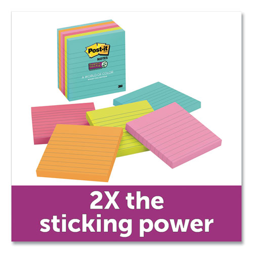 Super Sticky Pads' plant-based adhesive holds stronger and longer. Ideal for vertical and hard-to-stick surfaces. Pad Type: Super-Sticky Pad; Sheet Size (W x H): 4 x 4; Number of Sheets per Pad: 90; Assortment: Miami Collection.