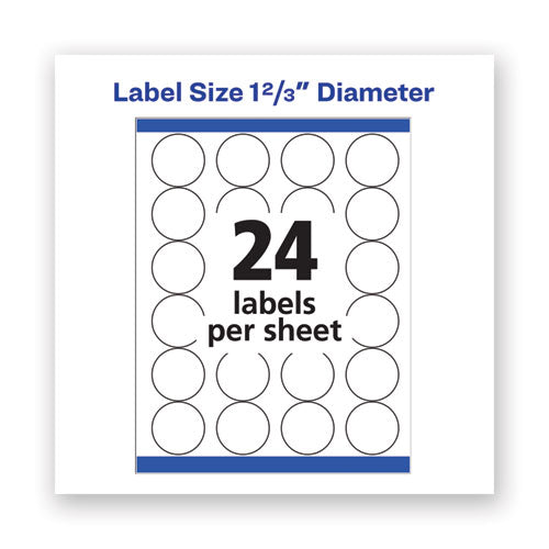 Have something important to say? Customize your white labels with attention-getting images or make your most important messages stand out with high-visibility color labels. Ideal for announcements, priority messages, addressing, color-coding, identification/warning labels and more! Easy to customize with free templates from Avery® Design & Print. For laser printers. Now you've got their attention. Laser Permanent White Round Labels with Sure Feed™—Ensuring a reliable printer feed. Shape: Round; Label Size - text: 1.66" dia.; Label Color(s): White; Color Family: White.