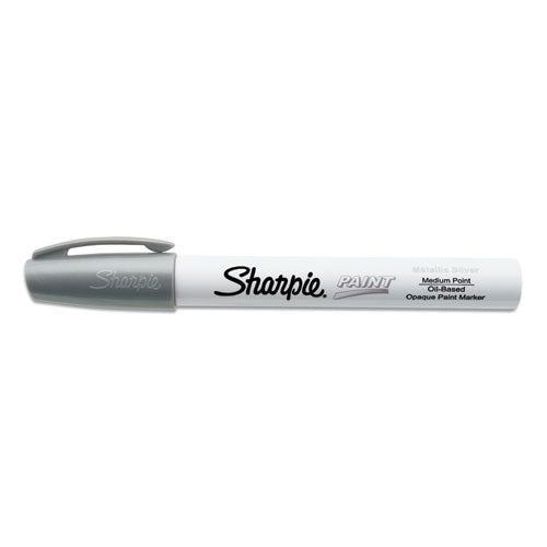 Permanent Paint Marker, Medium Bullet Tip, Silver, Dozen
