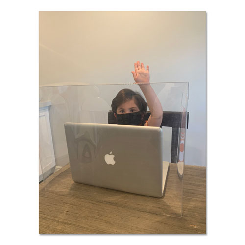 Help maintain social distancing and physical separation in the classroom, at the office or any other necessary location with these crystal clear plastic desk and table barriers. These dividers are now more important than ever to keep all those in a shared space safe. Dividers can be added quickly and easily to any area without any setup. Made of PET, a clear, strong, and lightweight recyclable plastic. Color: Clear; Overall Width: 18.5"; Overall Depth: 9.5"; Overall Height: 14".