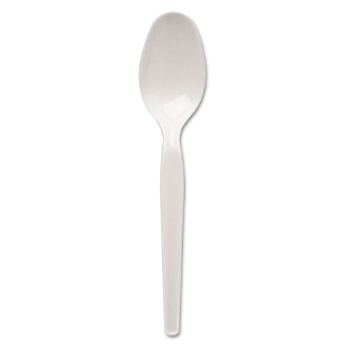 Plastic Cutlery, Heavyweight Teaspoons, White, 100-box