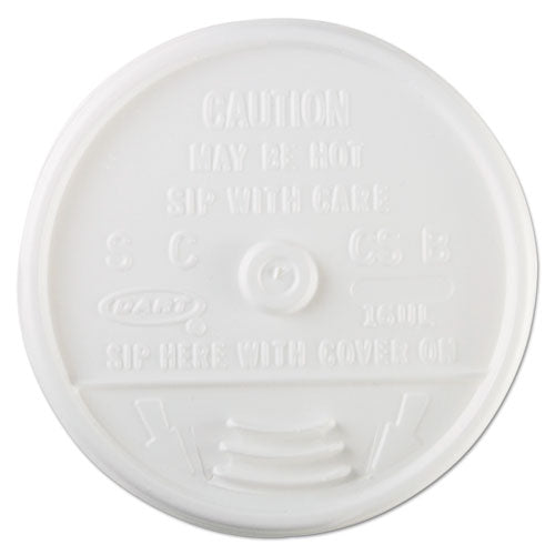 Universal design allows you to accommodate a wide range of hot and cold foam cups. Sip-Thru Lid—Perfect for hot or cold use. Helps reduce spills while allowing sipping on the go. Fits: 12-24 oz Foam Cups; Material(s): Plastic; Color(s): White; For Use With: 12J16, 14J16, 16J16, 20J16, 24J16, 12X16, 16X16, 20X16, 24X16.