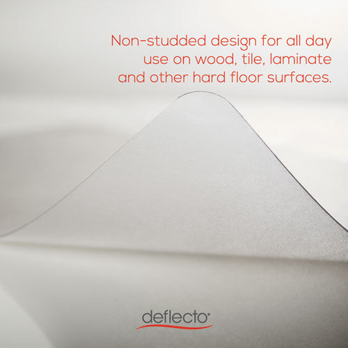 Extremely durable and resilient chairmat for all flooring types and Big & Tall applications. Highly rigid, hard surface provides less friction and dishing compared to traditional chairmats. Heavy weight chairmat for anytime use on all pile carpets and hard floors (Not suitable for use on concrete floors). Protects flooring from caster wear, spills and heavy traffic. Nonstudded. Mat Type: Chair Mat; Application: Hard Floors; Width: 36"; Length: 48".