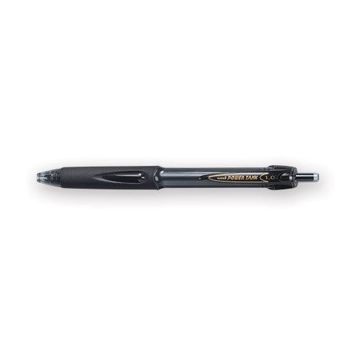 Write effectively in the toughest conditions with Power Tank Retractable Ballpoint Pens from uni-ball featuring a 1.0 mm medium point. Designed to perform optimally in extreme conditions, the pens feature a pressurized ink cartridge that offers fast and clean writing even on damp surfaces, in bitterly cold conditions or at unusual angles, including upside down. The refillable ballpoint pens come with a textured rubber grip that encourages greater writing comfort. uni Super Ink™ has pigmented particles that create an indelible bond with the paper, helping you create fraud, fade and water resistant documents even in harsh environments. The 1.0v mm medium point offers bold strokes with a rich color payoff for clear writing. When you need a rugged writing tool, this refillable ballpoint click pen is the best choice in any hemisphere. Pen Sub-Brand & SKU Line: Power Tank RT; Pen Style: Retractable; Pen Type: Ballpoint Pen; Refillable (Yes/No): Yes.