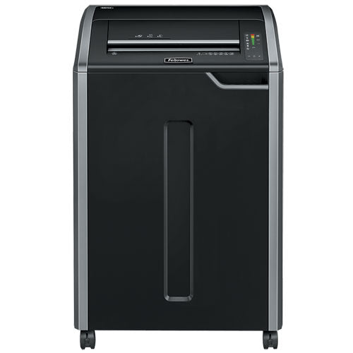 Provides high performance commercial shredding. The 100% Jam Proof System eliminates paper jams and powers through tough jobs. Auto-Oil™ automatically lubricates the cutters to enhance performance and extend shredder life. SafeSense® Technology stops shredding when hands touch the paper opening. Energy Savings System provides optimal energy efficiency 100% of the time—in use and out of use. Shreds 30 sheets per pass into 5/32" x 1 1/8" cross-cut particles (Security Level P-4) and also safely shreds staples, paper clips, plastic credit cards, CDs/DVDs and junk mail. It has a 35-gallon bin and features an extra wide 16" paper entry. The continuous duty motor offers non-stop shredding for 10+ users. Auto Oil. Recommended Shredder Users: 10 or more; Run Time: Continuous; Motor HP: 1.9 hp; Daily Usage Level: Continuous.