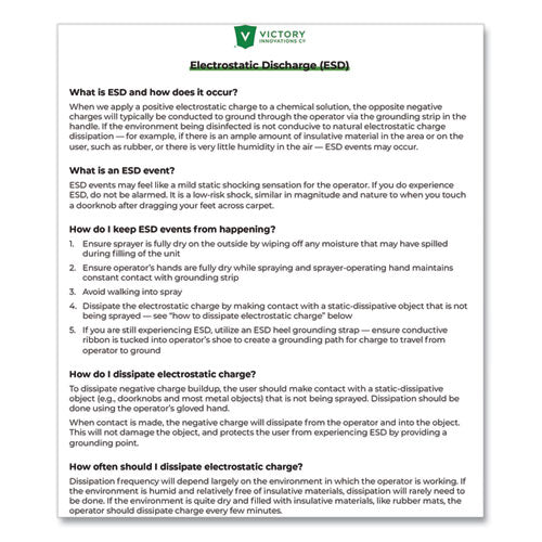 Our Professional Cordless Electrostatic Backpack Sprayer is designed to allow the professional to cover up to 23,000 square feet on a single tank of fluid (coverage per tank is determined by internal testing using flow rate and particle size). In addition, it is designed to save time and labor, spray less liquid, and cover more surfaces. Victory Sprayers' patented technology provides an electrical charge to solutions, allowing them to wrap conductive surfaces with an effective and even coverage. Double-charged particles envelope all conductive surfaces - shadowed, vertical and underneath. Sprayer/Hose/Nozzle Type: Sprayer; Sprayer/Nozzle Type: Trigger; Nozzle/Sprayer Settings: 40 Microns; 80 Microns; 110 Microns; Hose Diameter: 0.65".