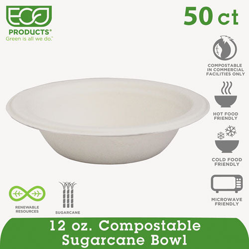 Renewable And Compostable Sugarcane Bowls - 12 Oz, 50-packs