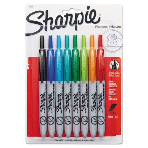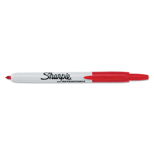 Forget about a cap--just click and create! These markers are easy to use, bold to the max, and permanent to the core, inspiring you to transform ordinary surfaces into passionately creative statements. Made to write practically everywhere, vivid Sharpie markers eliminate dull and boring. Sharpie has iconic ink that dries quickly and resists both water and fading. While pale imitations wither away, Sharpie markers make creations that endure. And these retractable markers have a safety seal valve design that helps prevent the ink from drying out. Featuring a convenient design for one-handed operation with no cap to remove or lose, Retractable Sharpie Permanent Markers make courageous self-expression as easy as can be. Marker Ink Type: Permanent; Marker Tip Type: Bullet; Marker Tip Size (text): Fine; Marker Color(s): Red.