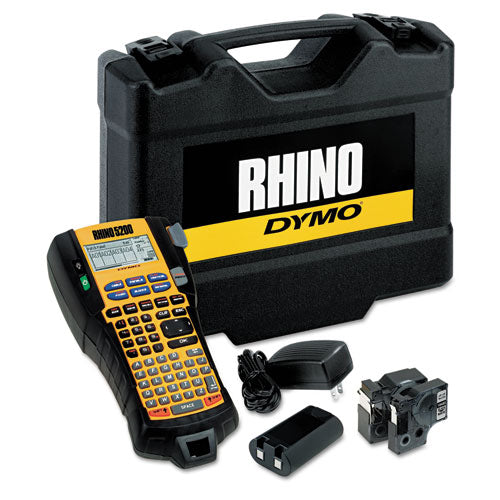 Designed for low voltage, electrical and MRO professionals, the DYMO Rhino 5200 Industrial Handheld Label Machine is durable, portable, and pre-programmed with a symbol library of currency, industry symbols, fractions, and punctuation. This label machine features special hot keys for automatic sizing and formatting for wires, terminal blocks, panels, and more. It can also print Code 39 and Code 128 barcodes on 3/4-inch labels, making asset management fast and easy. Power Source(s): AC Adapter (Included); Lithium-Ion Battery (Included); Tape Size: 1/4"; 3/8"; 1/2"; 3/4"; Number of Printed Lines: 5; Printing Speed: 0.4"/s.